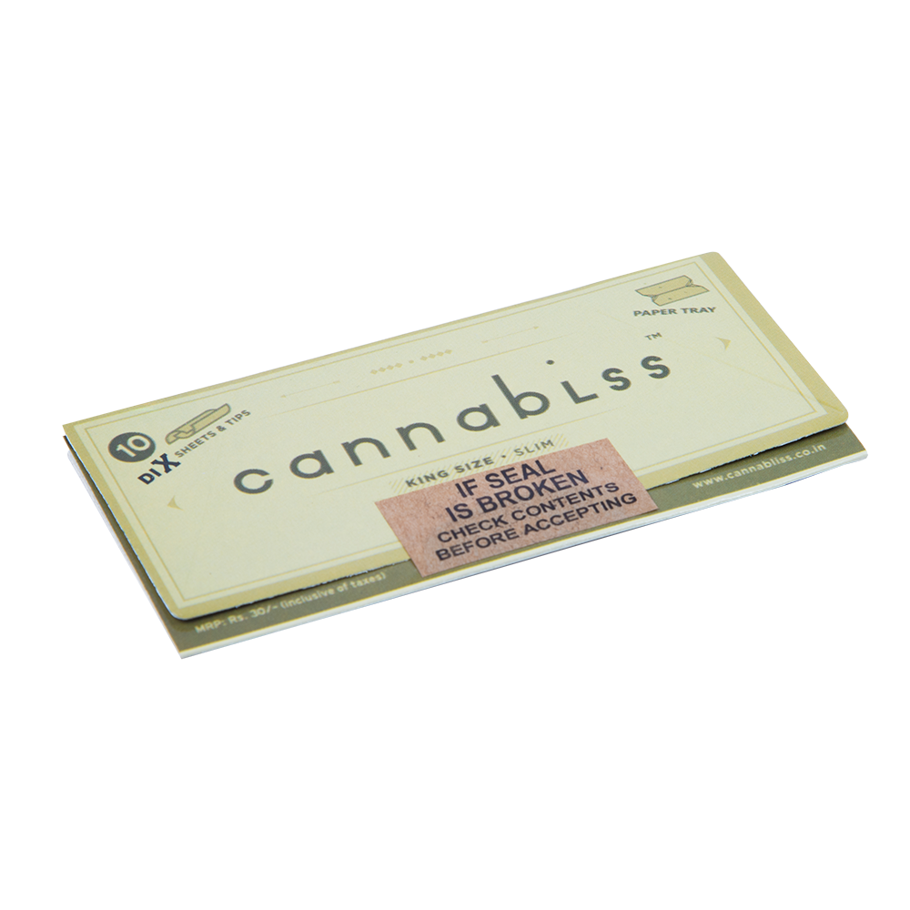 Party in your Pocket with Cannabliss 10 GO With Tray Rolling Paper | King Size Slim 12.5 GSM | Yum Sugar Gum | Vegan-Friendly | GMO-Free | Chlorine Free | 100% Chemical Free Crush it well pull the roach pull the sheet Roll it like pro pack it and show it off again 10 Units Of Cannabliss rolling paper 10 Perforated Roach Filter Tips Spanish Rice Paper Chlorine Free Vegan-Friendly No Chemicals GMO-Free Made In India If Cannabliss 10 GO With Tray rolled you mad and you were able to show off your pals refer us to them and stand a chance to be a King Member. This offer has a lot of perks, my friend. We don't want to kill the rush.